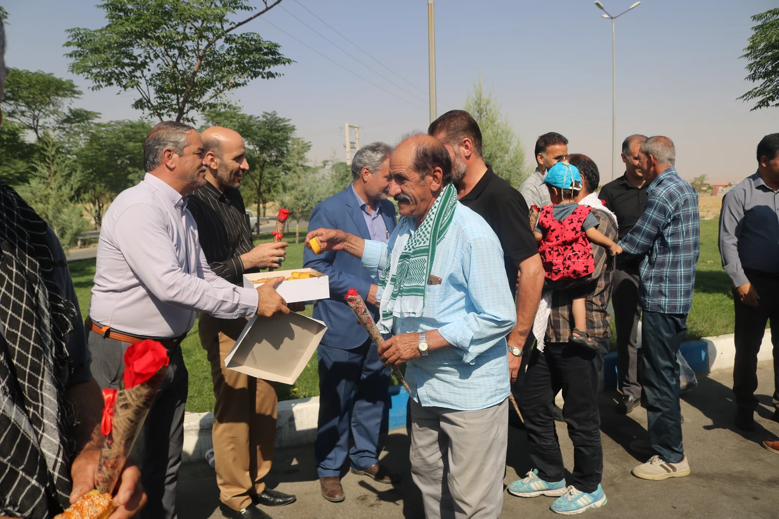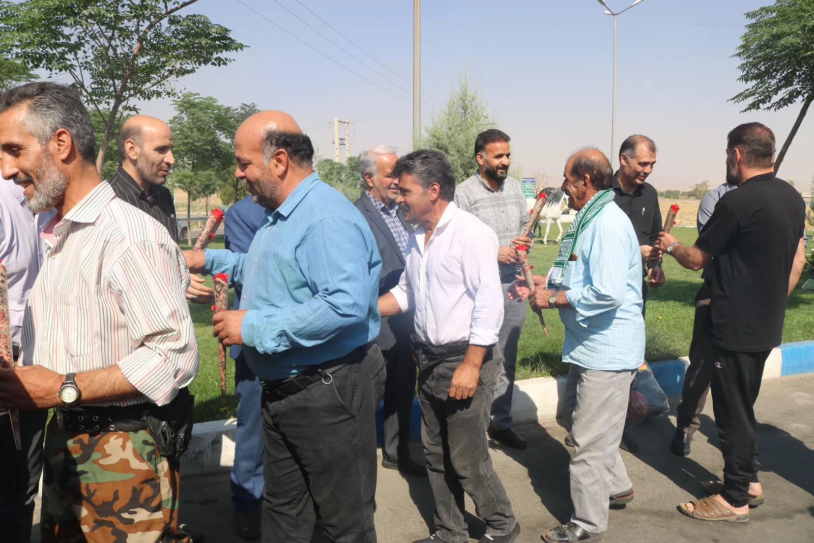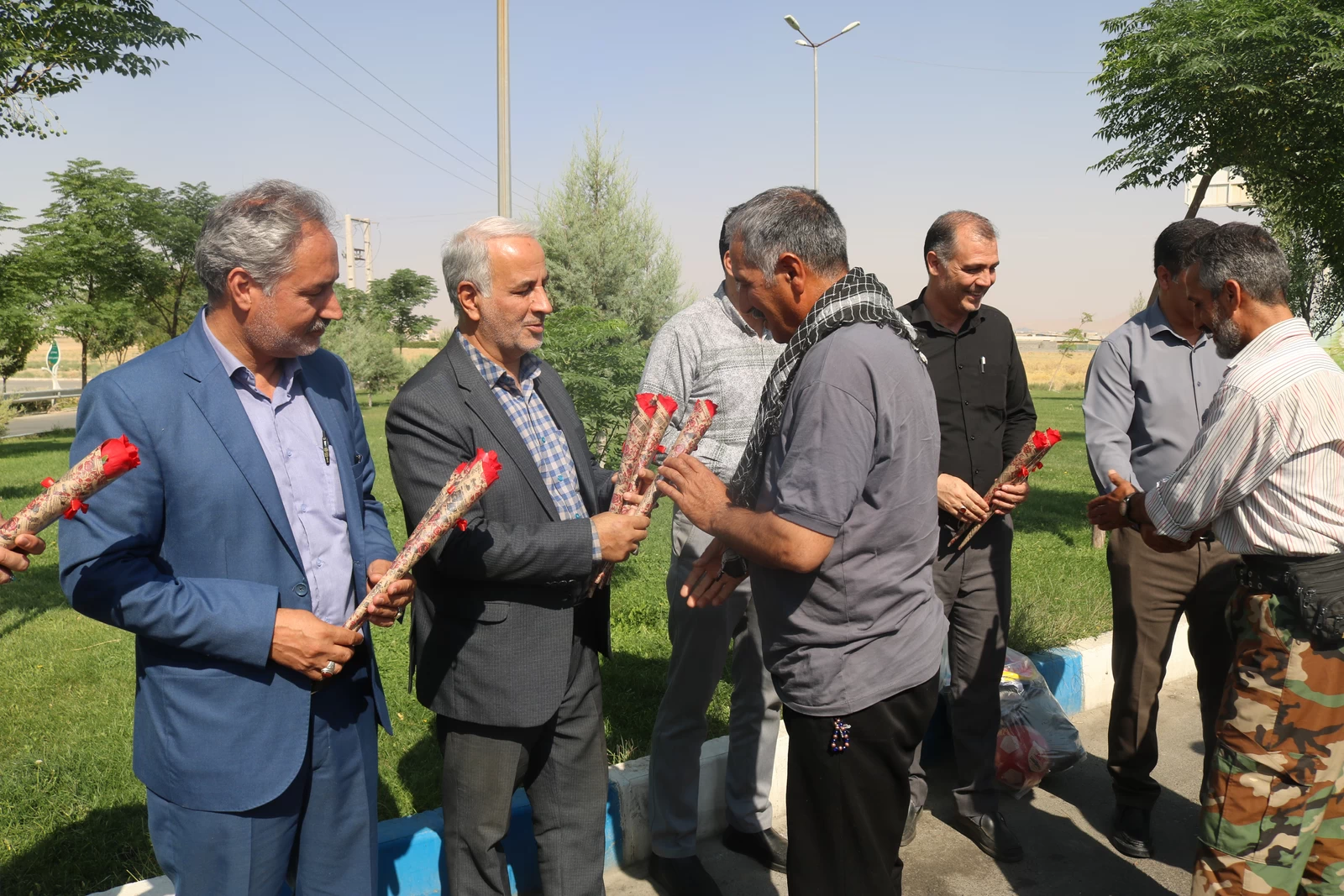 با الطاف بیکران خداوند متعال مراسم راهپیمائی اربعین که به تعبیر امام خامنه ای (مُدّظلّه العالی) پرچم بلند سیدالشّهدا (ع) و نشانه اراده پروردگار برای برافراشته شدن پرچم اسلام اهل بیت است با شکوه و عظمت کم سابقه ای در جوار بارگاه امیرمؤمنان حضرت علی علیه السّلام و حضرت اباعبدالله الحسین علیه السّلام امسال با شکوهتر از سالهای قبل برگزار گردید شهرداری خمین نیز این افتخار را دارد که ۱۵ نفر از همکاران را در جمع خیل خدمتگزاران به زائرین سرور آزادگان جهان داشته است بی تردید اقدامات ارزشمند این همکاران عزیز در پاسداشت اربعین حسینی و خدمتگزاری به زوّار اباعبدالله الحسین (ع) نزد پروردگار ارزش معنوی گرانسنگی دارد و ما نیز استجابت این دعای شریف را از درگاه خداوند متعال برای این همکاران عزیز مسئلت داریم اللّهُمَ ارزُقنی شَفاعَه الحُسین یَومَ الوُرود وَثبّت لی قَدمَ صِدق عِندَکَ مَعَ الحُسین وَ اَصحابِ الحُسین اَلّذینَ بَذَلوا مَهجَهُم دونَ الحُسین(ع) امروز شهردار ، رئیس شورای اسلامی شهر بهمراه تعدادی از پرسنل شهرداری در میدان ۹ دی به استقبال همکارانی که از سوی شهرداری اعزام به شهر مهران و زیارت حرم حضرت علی (ع) در نجف اشرف و کربلای معلّی حرم امام حسین و حضرت عباس علیهم السّلام جهت خدمت به زوّار امام حسین (ع) هجرت کرده بودند حضور پیدا کردند. در این خوش آمدگویی با شاخه های گل از این عزیزان استقبال شد.