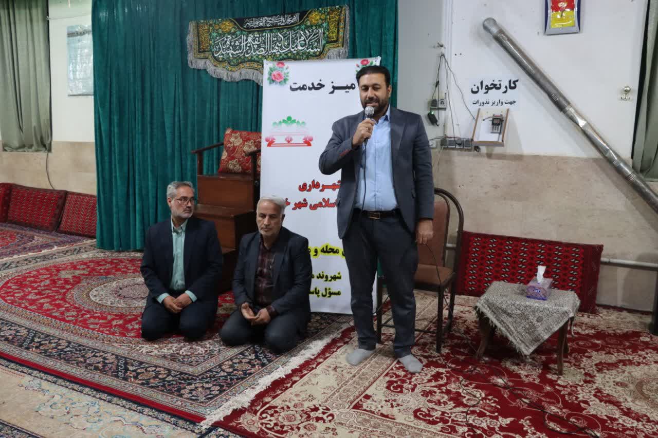 برگزاری دوازدهمین میز خدمت شهرداری و شورای اسلامی شهر خمین با محوریّت شورای محلّه و مسجد محور با حضور شهردار،رئیس و اعضای شورای اسلامی شهر در مسجد الزّهرا سلام الله علیها درخیابان مختار واقع در بلوار شورا