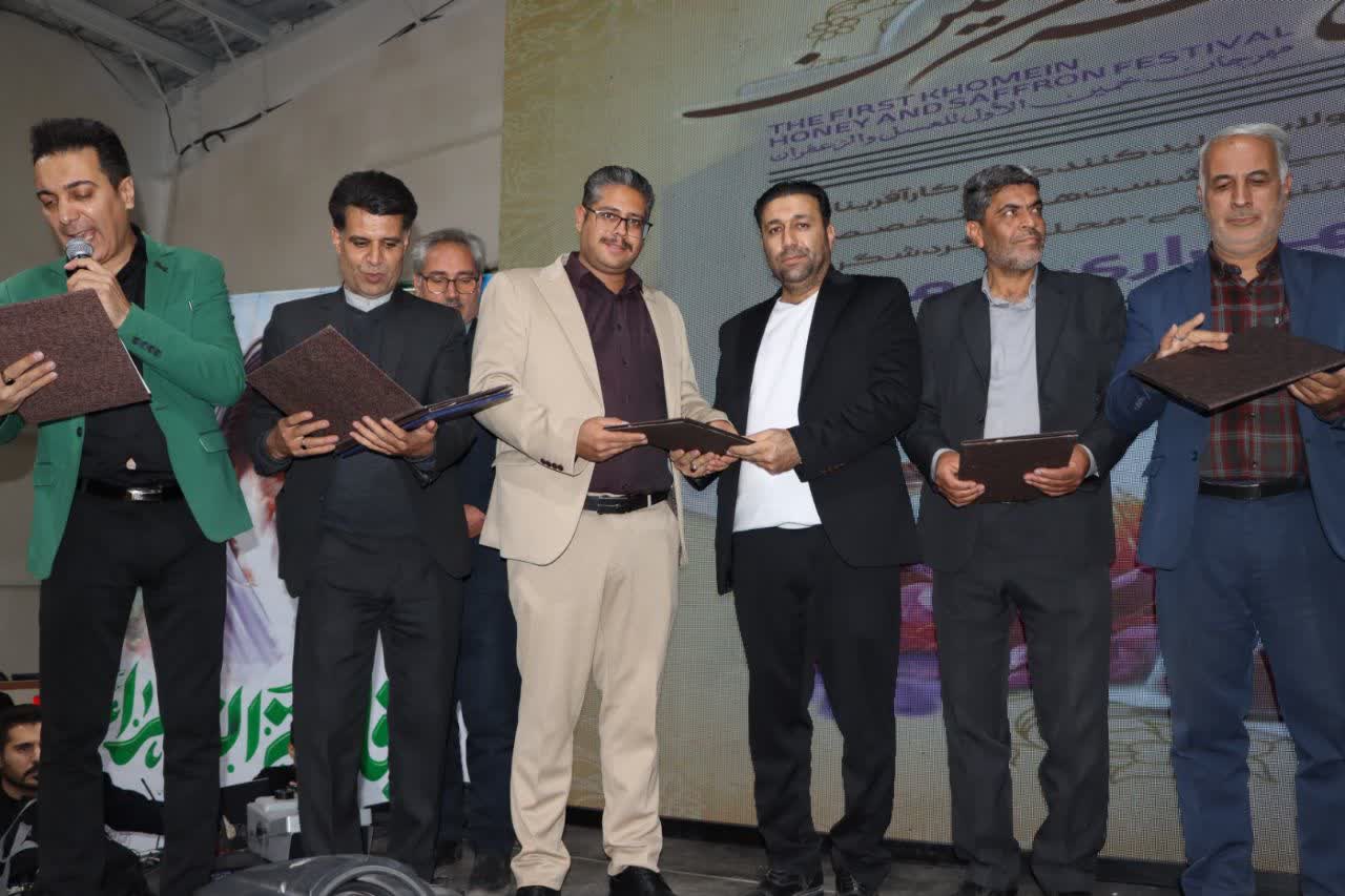 🌟 در بخش پایانی مراسم، شهردار خمین با تقدیر ویژه از گروه سرود امام علی علیهالسّلام شهر اراک، بر اهمیّت نقش هنر در ارتقای فرهنگ عمومی تأکید نمود. همچنین شهرداری و شورای اسلامی شهر خمین، با اهدای لوح سپاس از تولیدکنندگان و عرضهکنندگان عسل و زعفران، خبرنگاران و اصحاب رسانه قدردانی بعمل آوردند؛ اقدامی که نشان از توجّه مدیریت شهری به جایگاه تولید، رسانه و فرهنگ دارد.