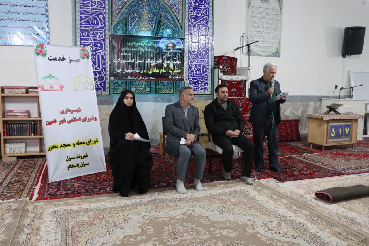 🔹 شانزدهمین میز خدمت شهرداری و شورای اسلامی شهر خمین شامگاه امروز، پس از نماز مغرب و عشاء، در مسجد حضرت علی بن ابیطالب (ع) واقع در خیابان سردار شهید حسین شمسی برگزار شد.