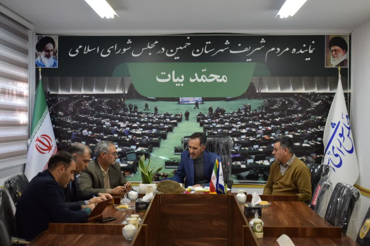 🔰در ادامهی پیگیریهای مستمر برای ارتقای خدمات شهری و توسعه زیرساختهای خمین، جلسهای مهم در دفتر نماینده مردم خمین در مجلس شورای اسلامی برگزار شد. این نشست به ریاست محمد بیات، رئیس مجمع نمایندگان استان مرکزی و نماینده مردم شریف خمین، و با حضور مهندس احمدی شهردار خمین و معاونین ایشان تشکیل گردید.