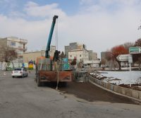 ادامه اجرای فونداسیون پایه چراغ های روشنایی میدان ۱۵ خرداد