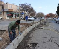 ادامه عملیات حذف چهار هزار مترمربع چمن و گل رُز از بلوار شهدای دانشجو