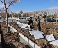 کاشت چمن و گل و درخت در پارک ارغوان واقع در بلوار شورا